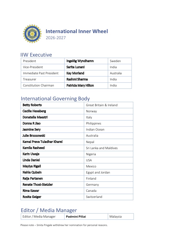 Röstningen för International Inner Wheel för år 2026-2027 är nu klar. Om du vill för att enklare läsa klicka på bilden!